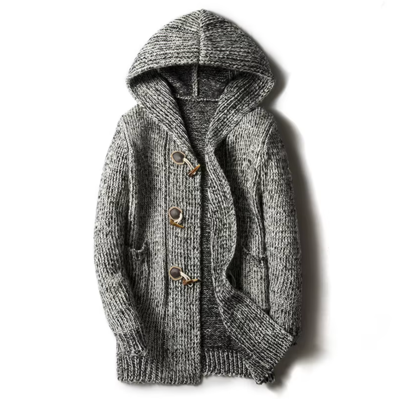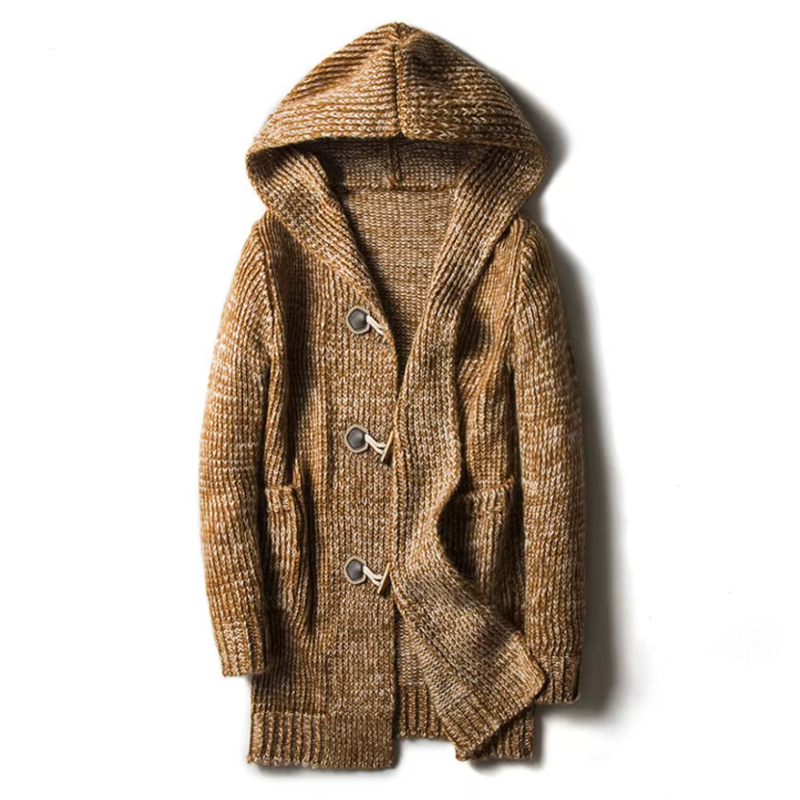 - Caratteristiche: Bottoni oversize, cappuccio generoso, stile senza tempo.